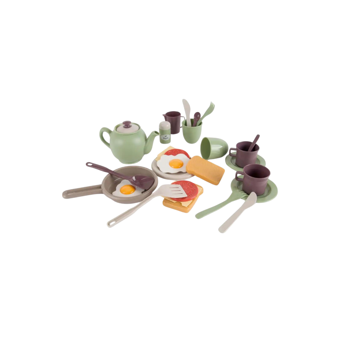 Invite everyone over for a big, tasty breakfast with this lovely Breakfast Set from Green Garden. The set includes bread, eggs, cheese and a pan for cooking. The breakfast set will spark the child's imagination and strengthen motor skills when preparing and serving breakfast. The set is suitable for indoor and outdoor play.